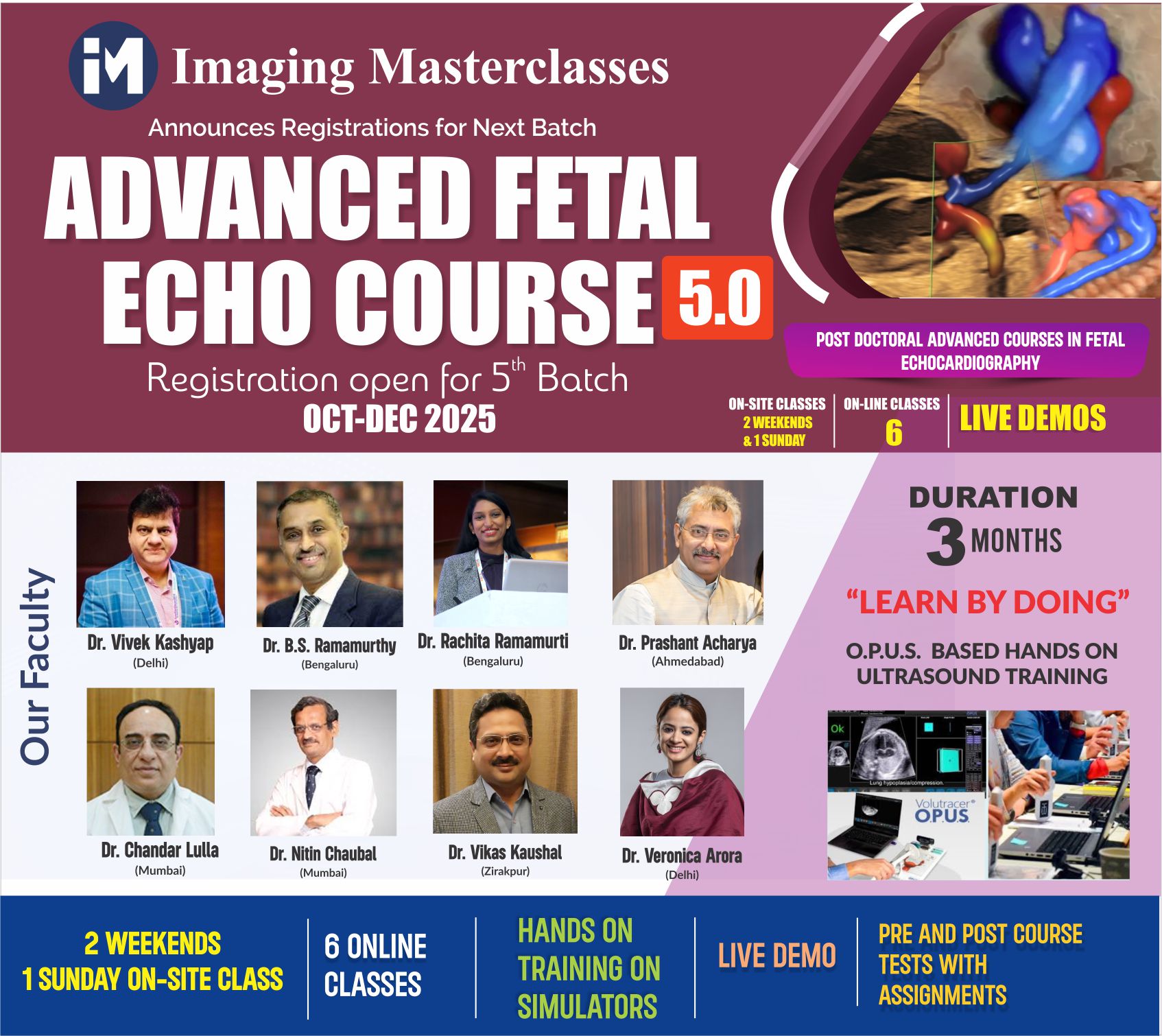 imaging masterclasses™ offers training in the field of fetal imaging, genetics, fetal therapy, embryology and fetal management. Some of the Best Faculty of national & international repute and teaching experience will impart a structured training program.